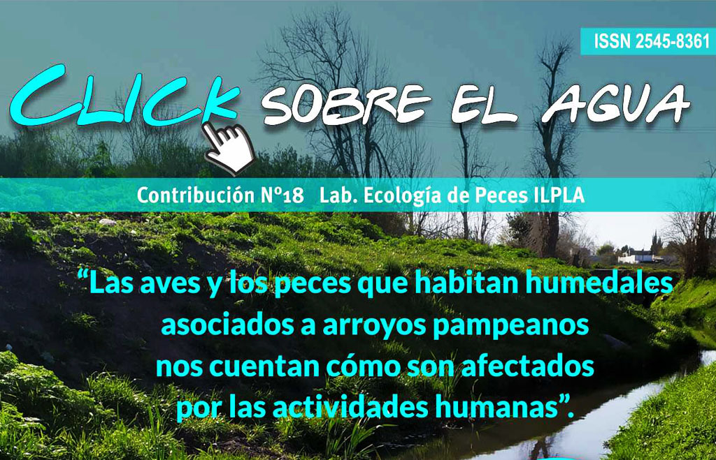 Click sobre el Agua Directora de publicación: Nora Gómez | Edición: Javier Garcia de Souza, Carolina Monti , Luciana de Tezanos –Contacto: click@ilpla.edu.ar CLICK 23 - "'¡Piedra libre!' para la Becasina de Bañado en la Pampa Deprimida" CLICK 22 - "Beneficios de conservar los humedales para disminuir la contaminación por agroquímicos en arroyos pampeanos" CLICK 21 - "Unas diminutas algas que tienen mucho que decir sobre los ambientes donde viven" CLICK 20 - "Conociendo el mundo de los recicladores ambientales: los hongos acuáticos" CLICK 19 - “El precio de la reproducción en la naturaleza: ¿quién invierte más energía, las hembras o los machos?” CLICK 18 - “Las aves y los peces que habitan humedales asociados a arroyos pampeanos nos cuentan cómo son afectados por las actividades humanas” CLICK 17 - “Criar pejerrey en jaulas flotantes: ¿Dónde? ¿Cómo? y ¿Cuándo?” CLICK 16 - “Hora de tomar una siesta”: Una Estrategia para sobrevivir bajo condiciones difíciles CLICK 15 - “Efectos de agroquímicos en arroyos de cuencas agrícolas y hortícolas” EDICIÓN ESPECIAL - “¿Quién se come a quién?:” Tramas tróficas microbianas y su implicancia en las lagunas pampeanas CLICK 14 - “Un caracol asiático en los arroyos pampeanos” CLICK 12 - “Sierra de la Ventana": Lugar a conservar por su historia geológica y sus organismos únicos. CLICK 11 - “Vamos a ver como es el reino del revés…”: Charcos en los caracoles CLICK 10 - “Efectos de la ceniza volcánica en los jejenes no picadores de la Patagonia” CLICK 09 - “Los insectos nos cuentan sobre el estado de la calidad ambiental de los arroyos:” El caso de la chinche de agua CLICK 08 - “Nuevo desafío para la investigación en el estuario del Río de La Plata” La problemática de los microplásticos para los peces CLICK 07 - “¿Qué son los taninos y qué provocan en una “pulga de agua”?” CLICK 06 - “La carpa común y su distribución en Argentina, ¿hasta dónde podrá llegar su expansión?” CLICK 05 - “De como las tortugas toman sol y la importancia de conservar los arroyos pampeanos” CLICK 04 - “Gusanos en el aire” CLICK 03 - “Consecuencias de la actividad agrícola sobre la fauna de los arroyos pampeanos” CLICK 02 - “Sinelobus stanfordi: un pequeño ingeniero sensible a la contaminación en las playas rioplatenses” CLICK 01 - “El Niño y La Niña: un fenómeno climático tan lejano con repercusiones tan cercanas”
